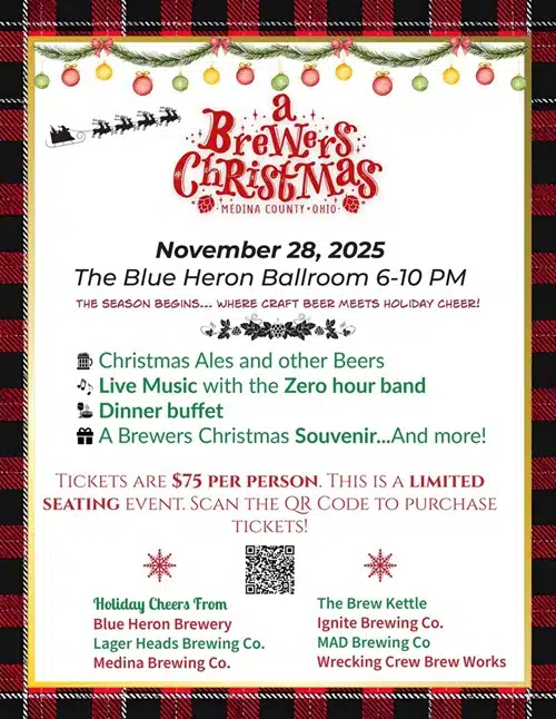 Blue Heron Brewery • Lager Heads Brewing Company • Medina Brewing Company • The Brew Kettle Brunswick & Topgolf Swing Suites • Ignite Brewing Company – Brunswick • MAD Brewing Company • Wrecking Crew Brew Works